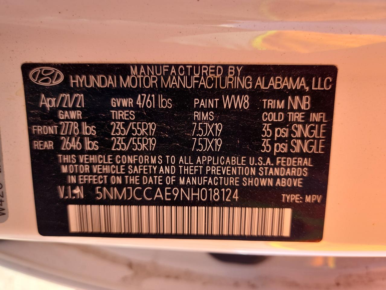 Цвет БелыйЦилиндры 4Привод Полный приводVIN 5NMJCCAE9NH018124Состояние НеизвестноПовреждения По всему авто