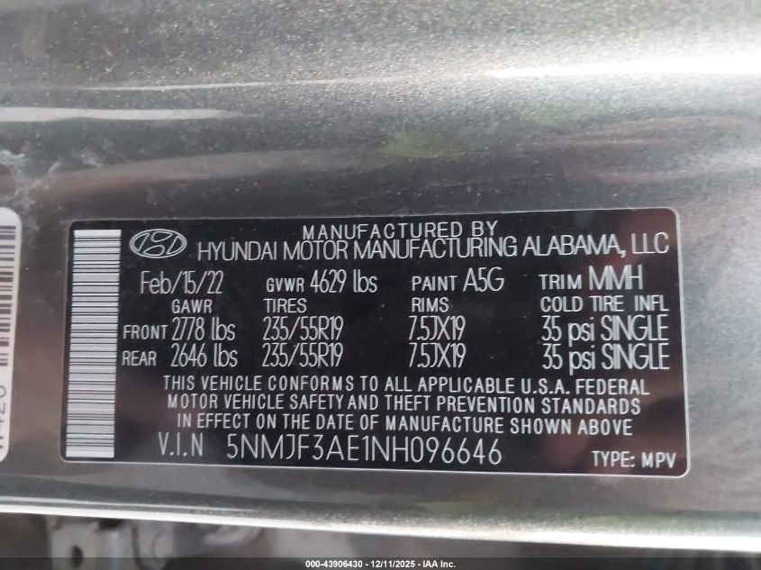 2022 HYUNDAI TUCSON - 5NMJF3AE1NH096646, цвет - Серый, 2.5, Бензин, Передний привод из США