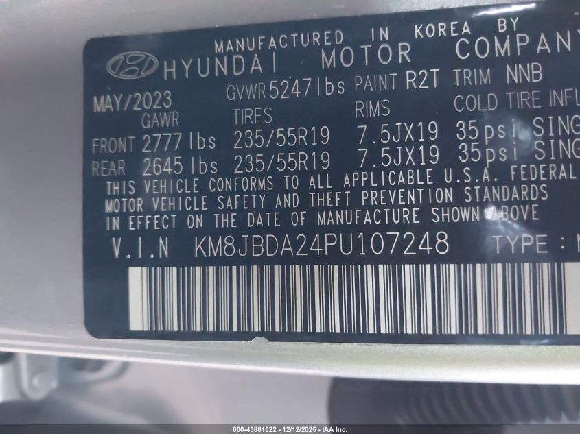 2023 HYUNDAI TUCSON - KM8JBDA24PU107248, цвет - Серебряный, 1.6, Гибрид, Полный привод из США