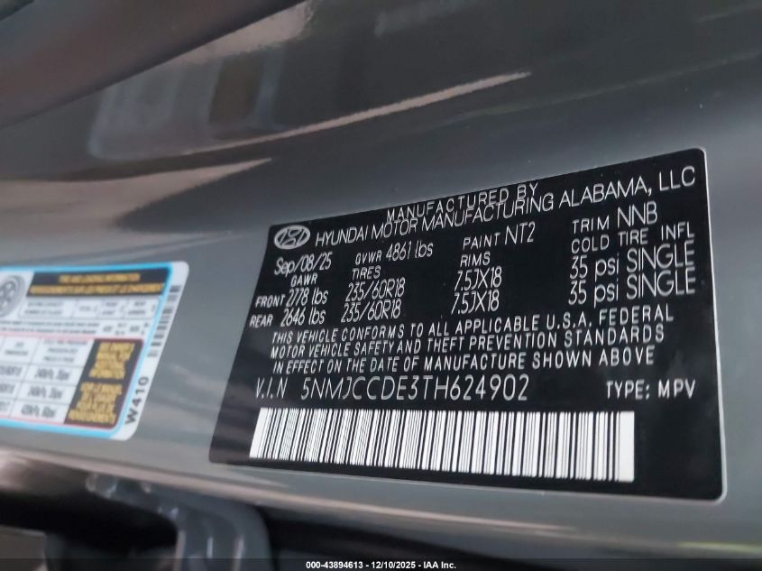 Цвет СерыйЦилиндры 4Привод Полный приводVIN 5NMJCCDE3TH624902Состояние СтационарноПовреждения Передняя и задняя