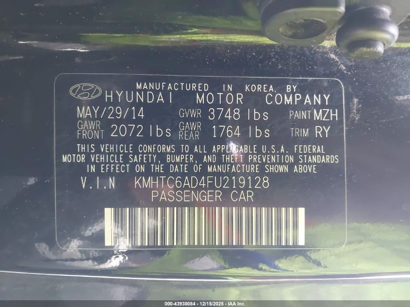 2015 HYUNDAI VELOSTER - KMHTC6AD4FU219128, цвет - Черный, 1.6, Бензин, Передний привод из США