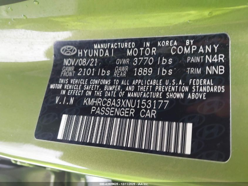 2022 HYUNDAI VENUE - KMHRC8A3XNU153177, цвет - Зеленый, 1.6, Бензин, Передний привод из США