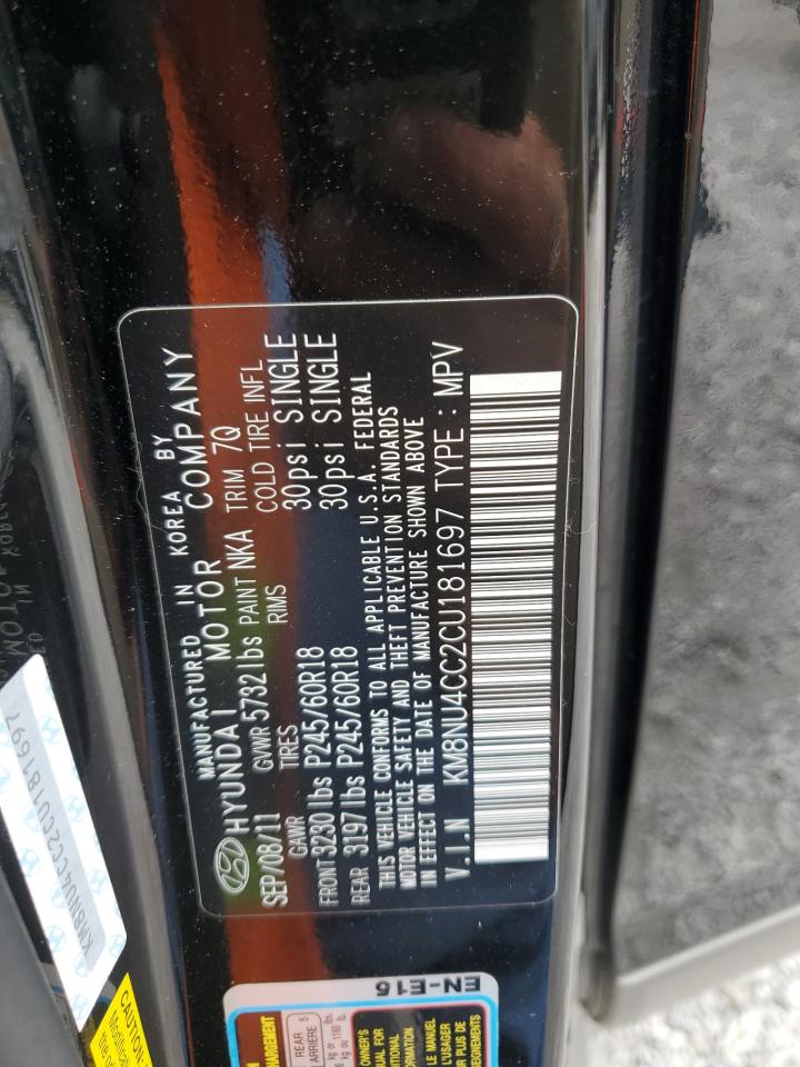 2012 HYUNDAI VERACRUZ - KM8NU4CC2CU181697, цвет - Черный, 3.8, Бензин, из США