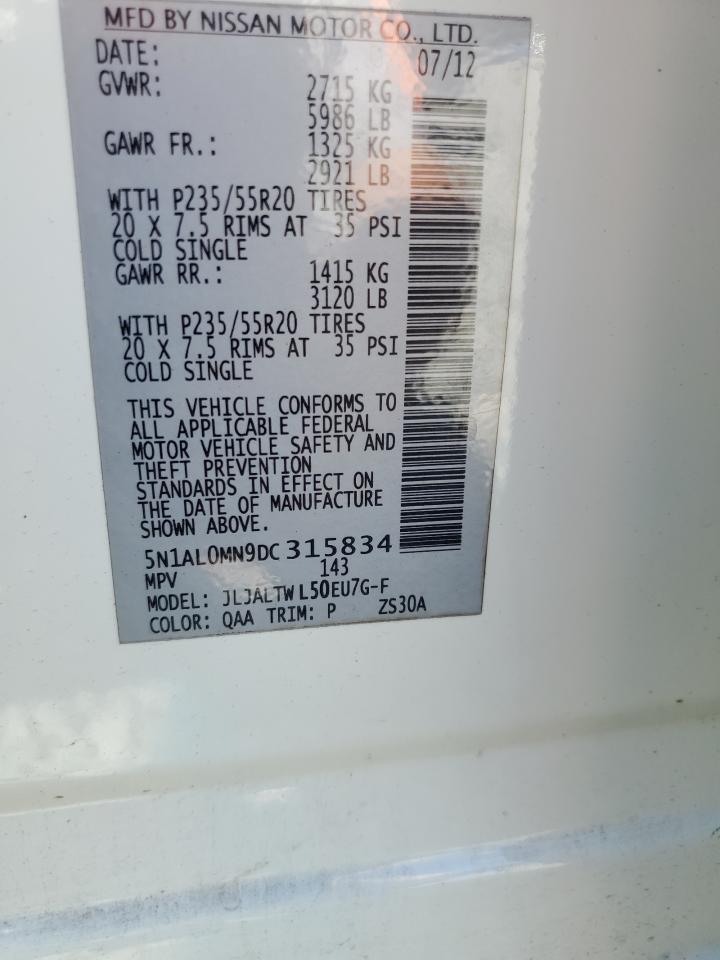 2013 INFINITI JX35 - 5N1AL0MN9DC315834, цвет - Белый, 3.5, Бензин, из США
