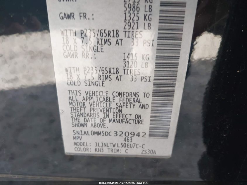 Цвет ЧерныйЦилиндры 6Привод Полный приводVIN 5N1AL0MM5DC320942Состояние Заводится и едет (проверено)
