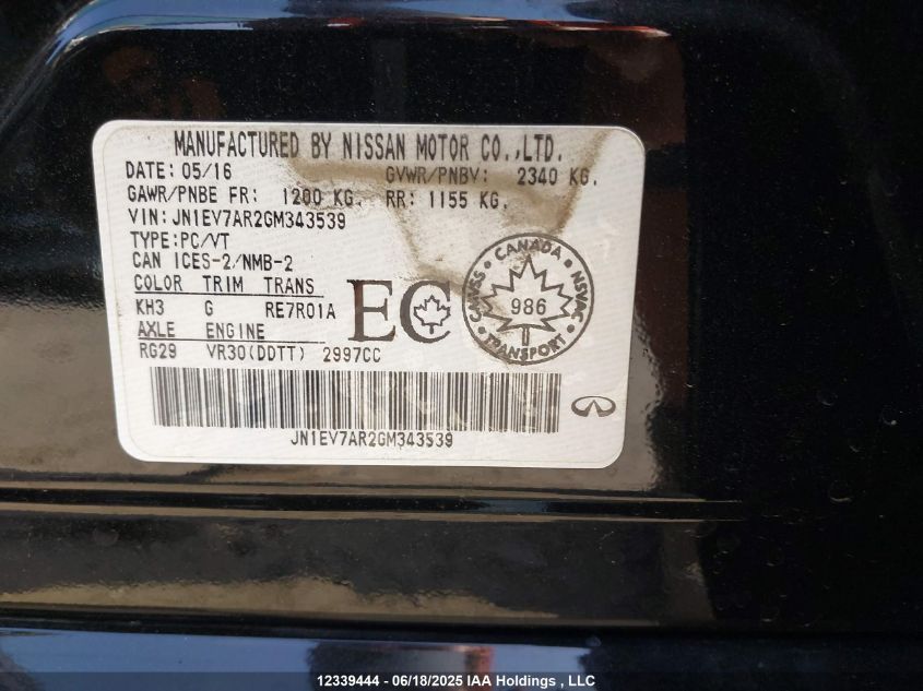 2016 INFINITI Q50 - JN1EV7AR2GM343539, цвет - Черный, , Бензин, Полный привод из США