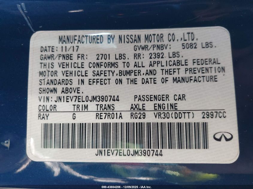 Цвет СинийЦилиндры 6Привод Полный приводVIN JN1EV7EL0JM390744Состояние СтационарноПовреждения Вандализм