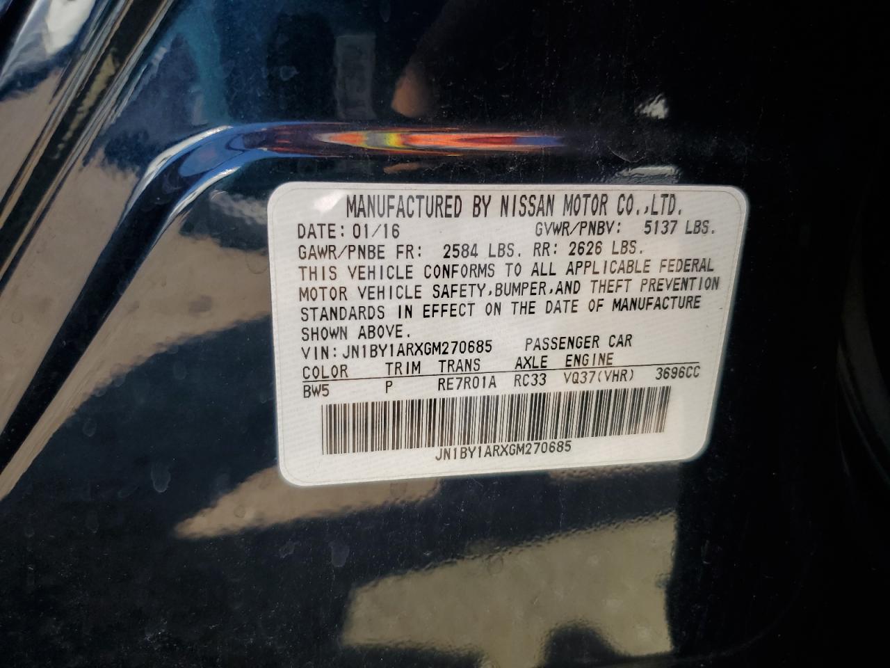 Цвет СинийЦилиндры 6Привод Полный приводVIN JN1BY1ARXGM270685Состояние Заводится и едет (проверено)Повреждения Передняя или задняяДата аукциона 2025-10-07