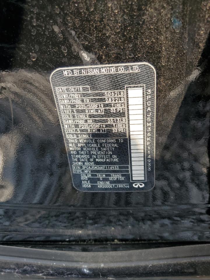 2019 INFINITI QX50 - 3PCAJ5M36KF114933, цвет - Черный, 2.0, Бензин, Полный привод из США