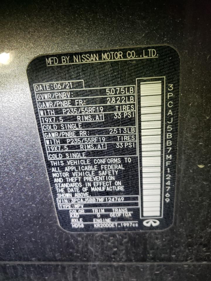2021 INFINITI QX50 - 3PCAJ5BB7MF124769, цвет - Серый, 2.0, Бензин, Полный привод из США