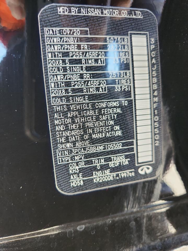 2021 INFINITI QX50 - 3PCAJ5BB4MF105502, цвет - Черный, 2.0, Бензин, Полный привод из США