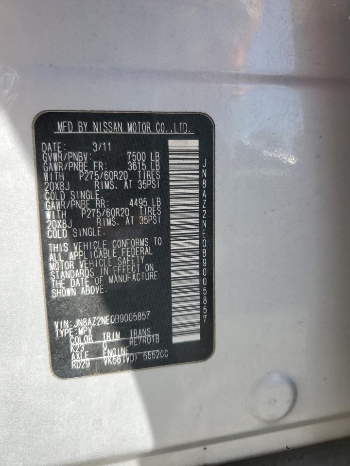 2011 INFINITI QX56 - JN8AZ2NE0B9005857, цвет - Серебряный, 5.6, Бензин, Полный привод из США