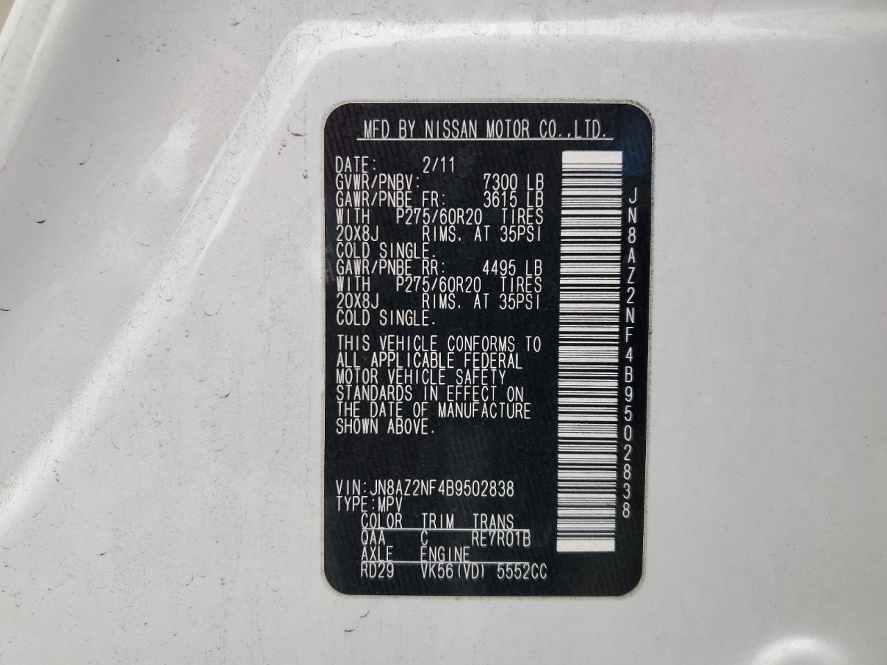 2011 INFINITI QX56 - JN8AZ2NF4B9502838, цвет - Белый, 5.6, Бензин, Задний привод из США
