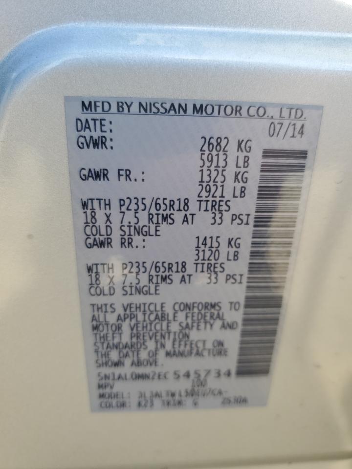 2014 INFINITI QX60 - 5N1AL0MN2EC545734, цвет - Серебряный, 3.5, Бензин, из США