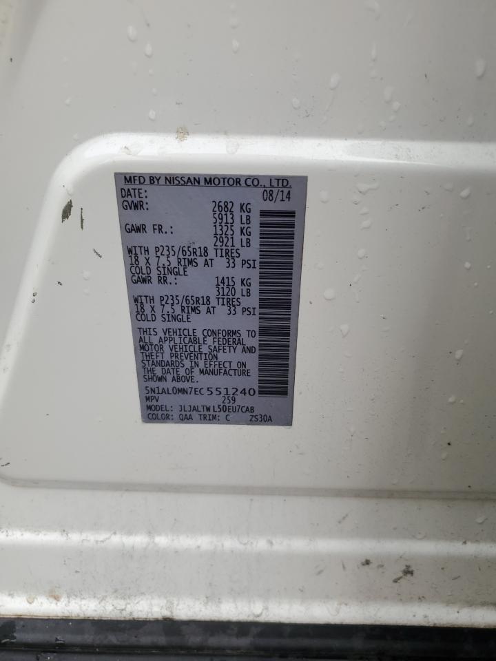 Цвет БелыйЦилиндры 6VIN 5N1AL0MN7EC551240Состояние Заводится и едет (проверено)Повреждения Передняя или задняя