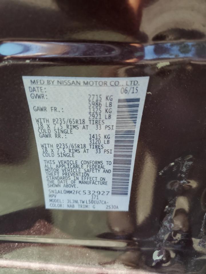 Цвет БордовыйЦилиндры 6Привод Полный приводVIN 5N1AL0MM2FC532927Состояние Заводится и едет (проверено)Повреждения По бокам