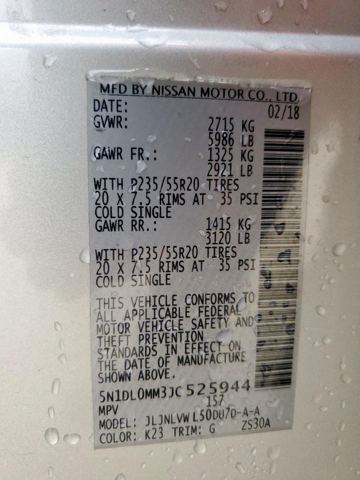 Цвет СеребряныйЦилиндры 6Привод Полный приводVIN 5N1DL0MM3JC525944Состояние Заводится и едет (проверено)Повреждения Передняя или задняя