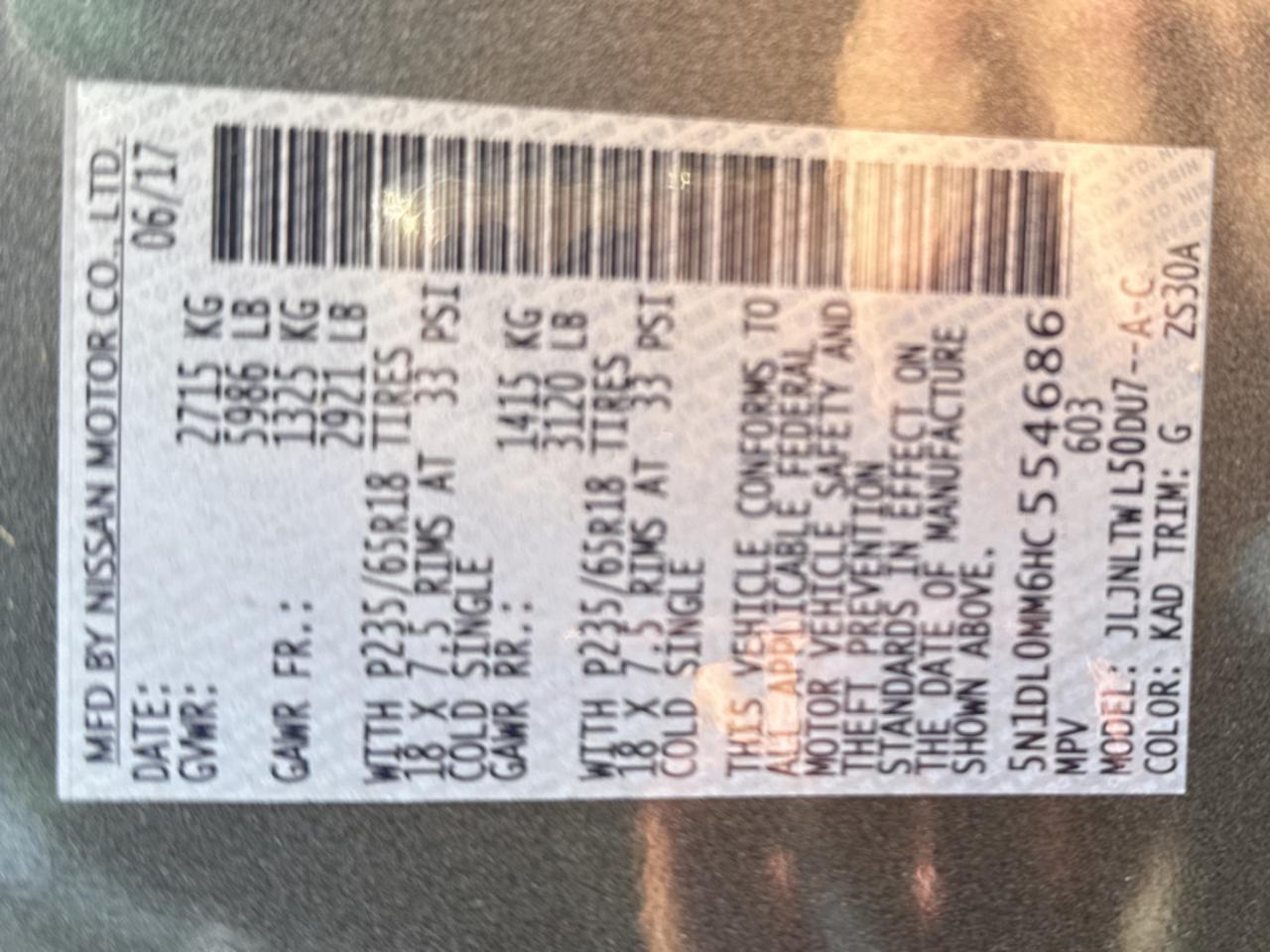 Цвет СерыйЦилиндры 6Привод Полный приводVIN 5N1DL0MM6HC554686Состояние НеизвестноПовреждения НезначительныеДата аукциона 2025-10-07