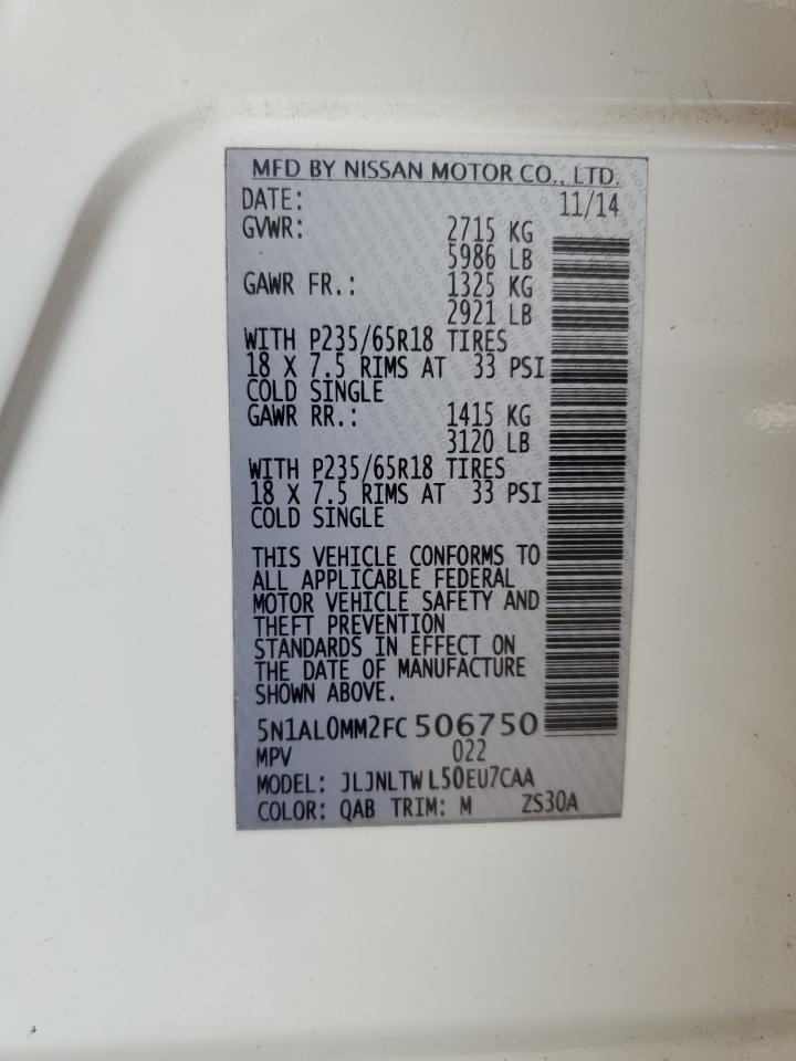 2015 INFINITI QX60 - 5N1AL0MM2FC506750, цвет - Белый, 3.5, Бензин, Полный привод из США