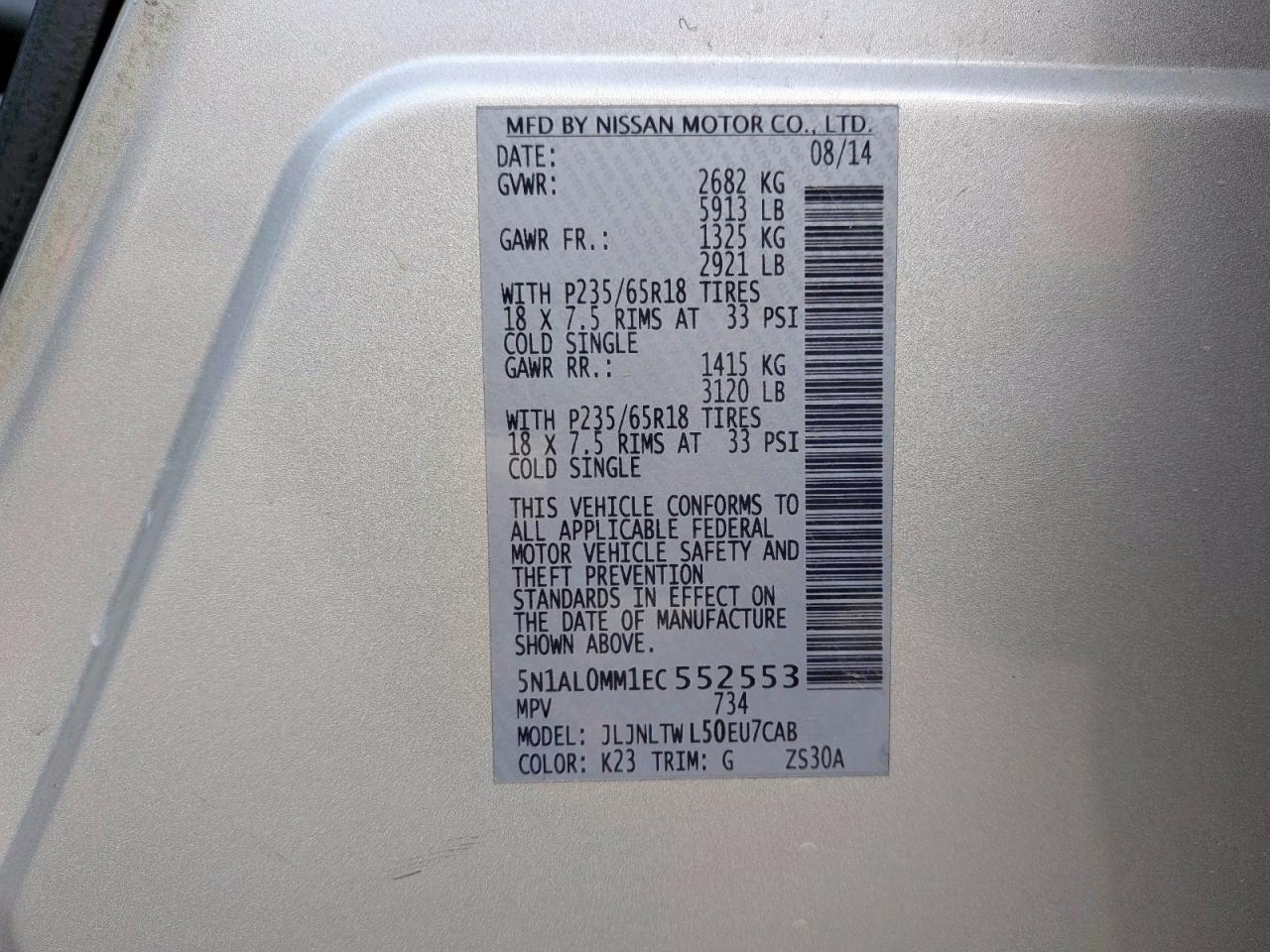 Цвет СеребряныйЦилиндры 6Привод Полный приводVIN 5N1AL0MM1EC552553Состояние Заводится и едет (проверено)Повреждения НезначительныеДата аукциона 2025-10-10