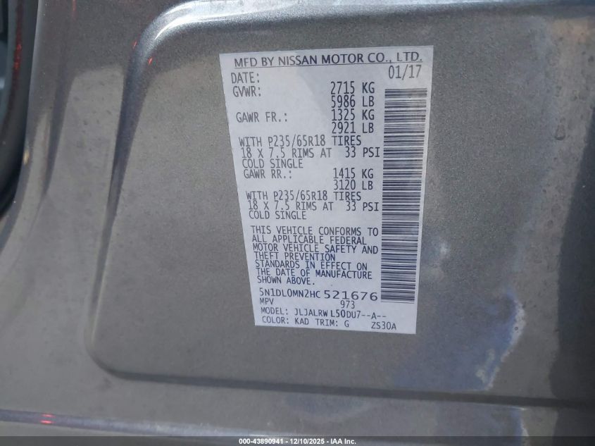 2017 INFINITI QX60 - 5N1DL0MN2HC521676, цвет - Серебряный, 3.5, Бензин, Передний привод из США