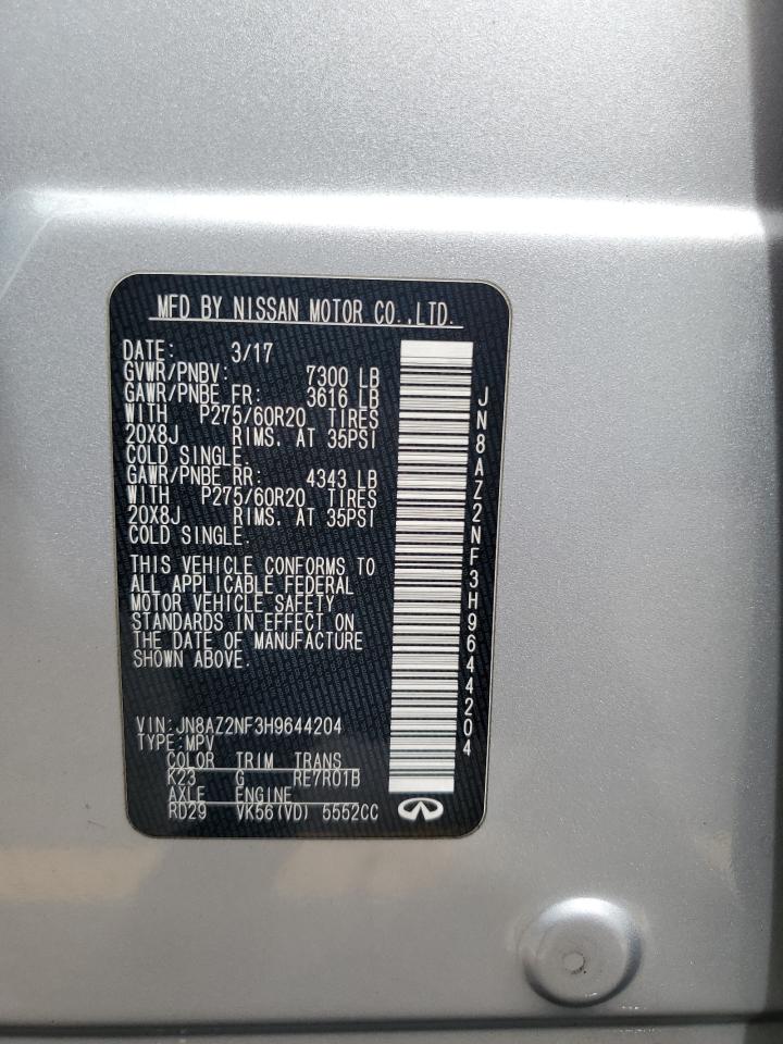 2017 INFINITI QX80 - JN8AZ2NF3H9644204, цвет - Серебряный, 5.6, Бензин, Задний привод из США