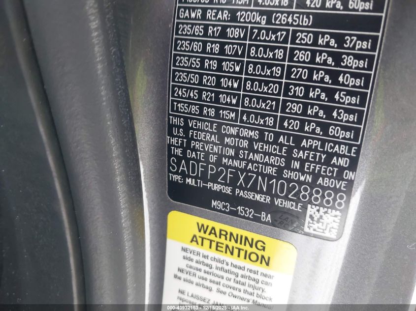 Цвет СерыйЦилиндры 4Привод Полный приводVIN SADFP2FX7N1028888Состояние Заводится и едет (проверено)Повреждения Передняя правая