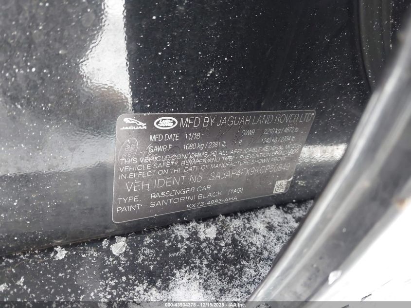 2019 JAGUAR XE - SAJAP4FX9KCP50849, цвет - , 2.0, Бензин, Полный привод из США