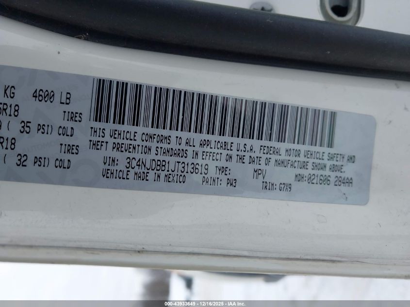 Цвет БелыйЦилиндры 4Привод Полный приводVIN 3C4NJDBB1JT313619Состояние НеизвестноПовреждения Передняя или задняя