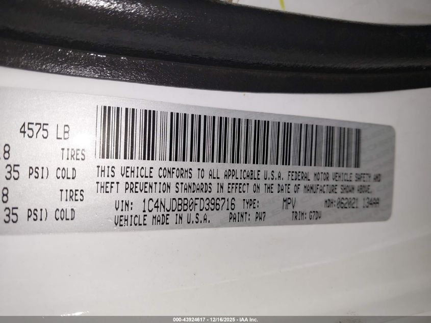 Цвет Цилиндры 4Привод Полный приводVIN 1C4NJDBB0FD396716Состояние НеизвестноПовреждения Передняя или задняя