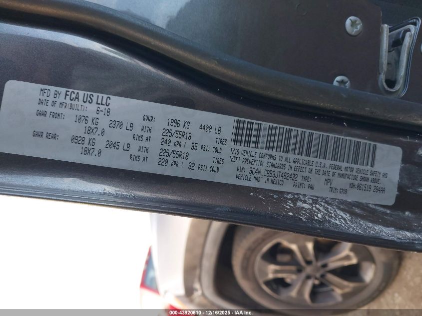 2018 JEEP COMPASS - 3C4NJCBB3JT462432, цвет - Серый, 2.4, Бензин, Передний привод из США