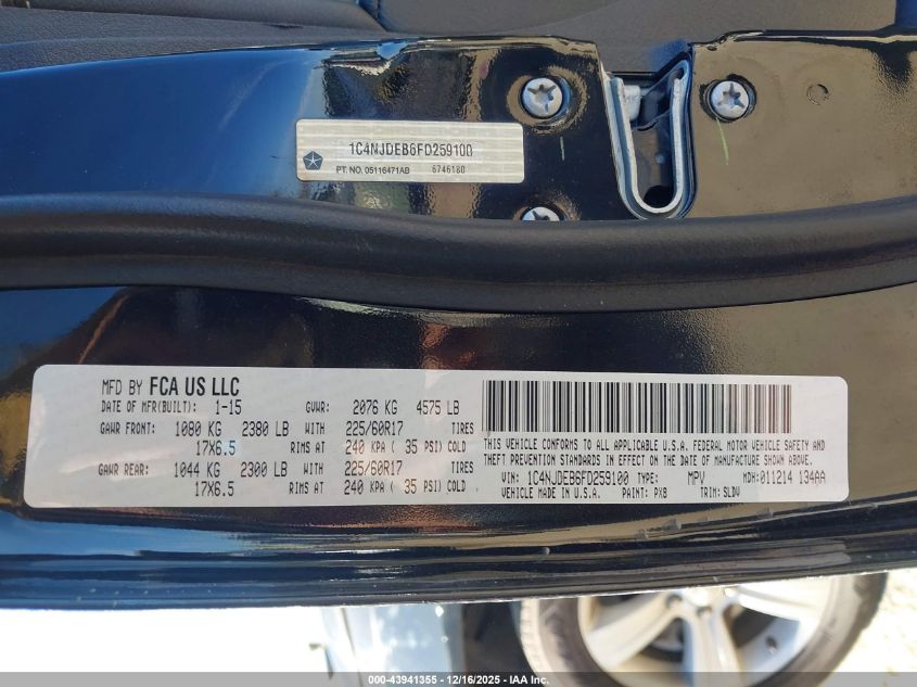 2015 JEEP COMPASS - 1C4NJDEB6FD259100, цвет - Черный, 2.4, Бензин, Полный привод из США
