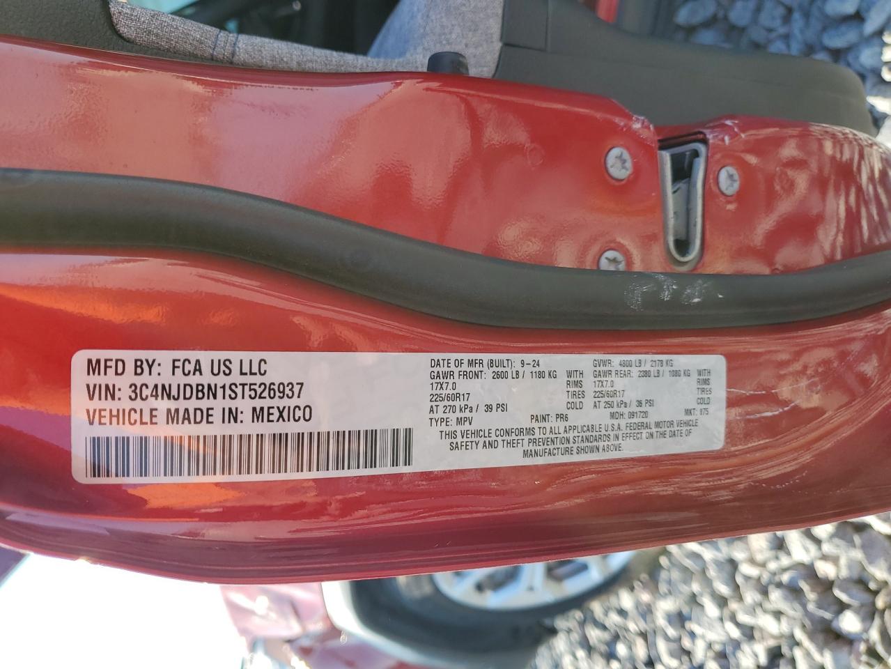 Цвет КрасныйЦилиндры 4Привод 4x4 с передним приводомVIN 3C4NJDBN1ST526937Состояние НеизвестноПовреждения По бокамДата аукциона 2025-10-07