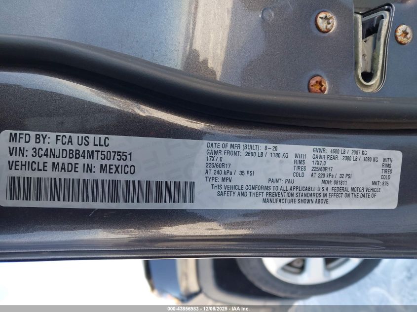 Цвет СерыйЦилиндры 4Привод Полный приводVIN 3C4NJDBB4MT507551Состояние Заводится и едет (проверено)Повреждения Передняя и задняя