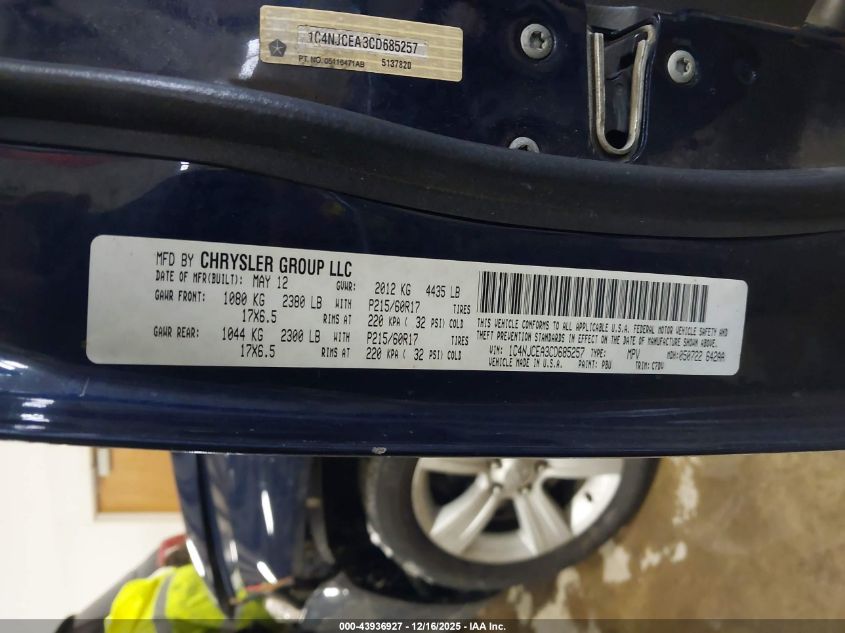 Цвет СинийЦилиндры 4Привод Передний приводVIN 1C4NJCEA3CD685257Состояние НеизвестноПовреждения Передняя или задняя