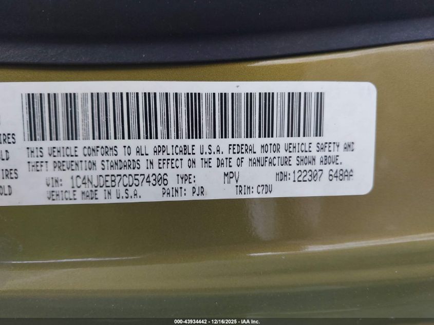 Цвет ЗеленыйЦилиндры 4Привод Полный приводVIN 1C4NJDEB7CD574306Состояние Заводится и едет (проверено)Повреждения Передняя или задняя