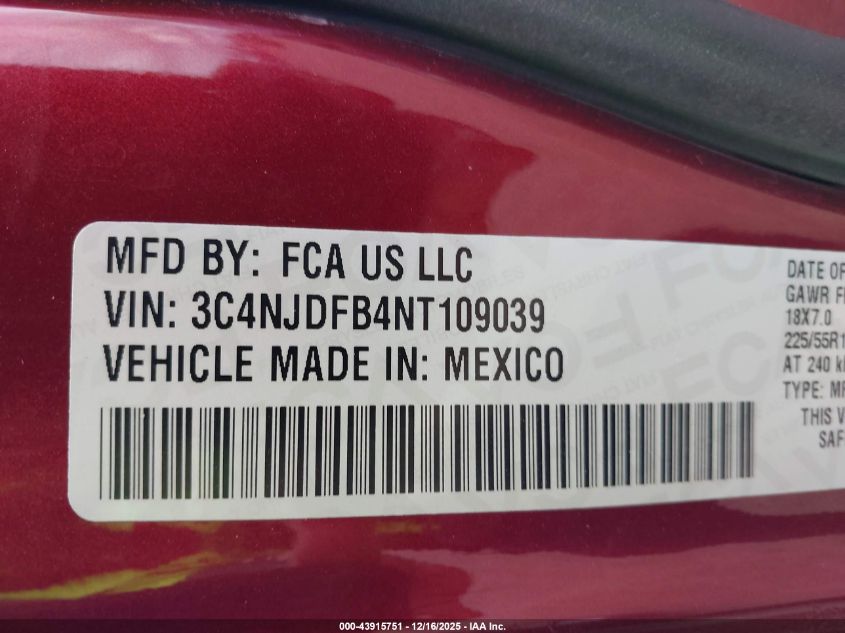 2022 JEEP COMPASS - 3C4NJDFB4NT109039, цвет - , 2.4, Бензин, Полный привод из США