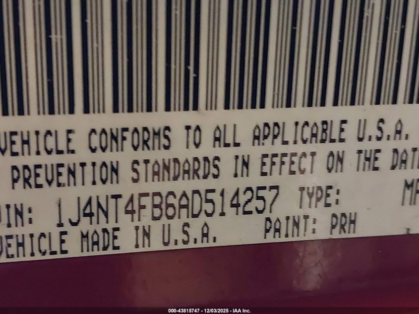 Цвет КрасныйЦилиндры 4Привод Передний приводVIN 1J4NT4FB6AD514257Состояние Заводится и едет (проверено)Повреждения Передняя или задняя