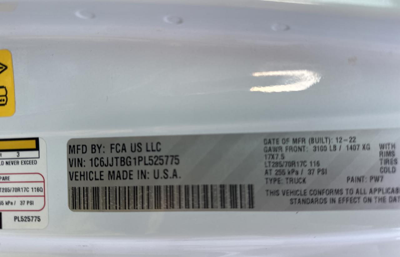 Цвет БелыйЦилиндры 6Привод 4x4 с задним приводомVIN 1C6JJTBG1PL525775Состояние Заводится и едет (проверено)Повреждения НезначительныеДата аукциона 2025-10-09