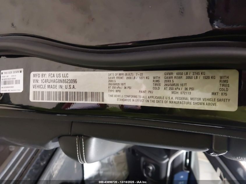 2022 JEEP GRAND CHEROKEE - 1C4RJHAG8N8623096, цвет - Черный, 3.6, Бензин, Полный привод из США
