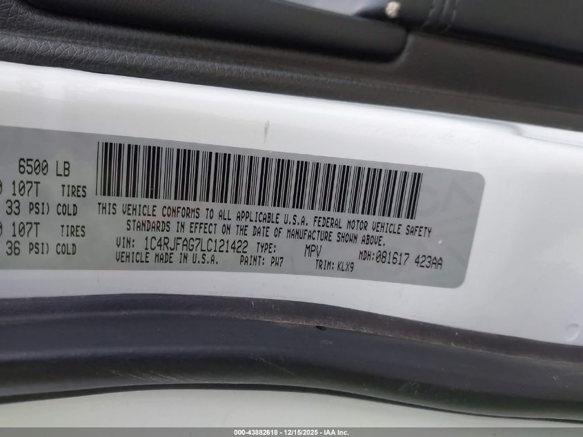 2020 JEEP GRAND CHEROKEE - 1C4RJFAG7LC121422, цвет - Белый, 3.6, Бензин, Полный привод из США