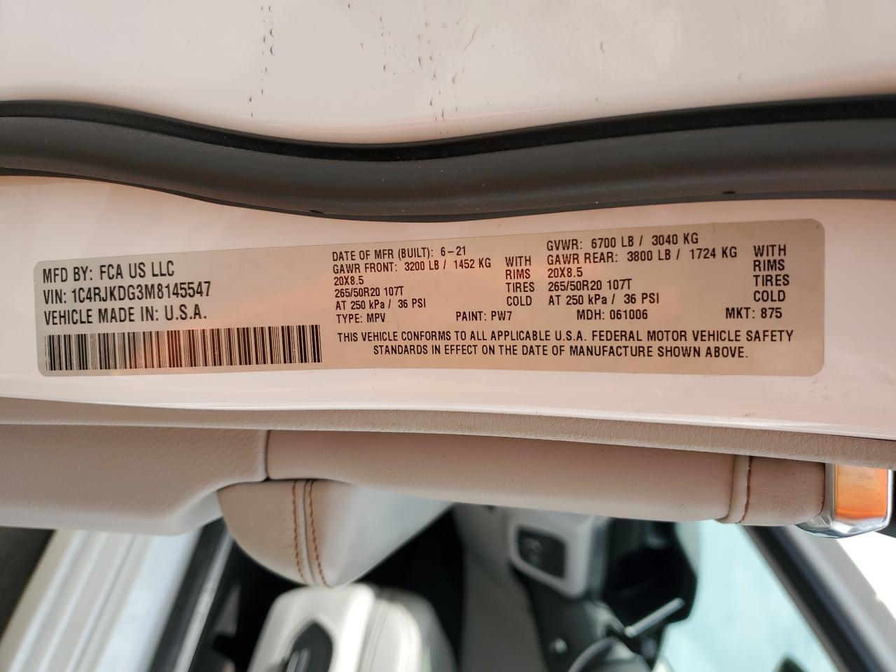 2021 JEEP GRAND CHEROKEE - 1C4RJKDG3M8145547, цвет - Белый, 3.6, Бензин, 4x4 с задним приводом из США