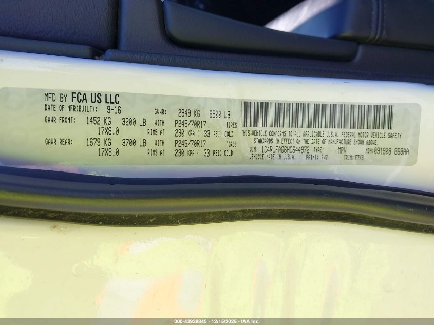 Цвет БелыйЦилиндры 6Привод Полный приводVIN 1C4RJFAG6HC644972Состояние СтационарноПовреждения Задняя левая
