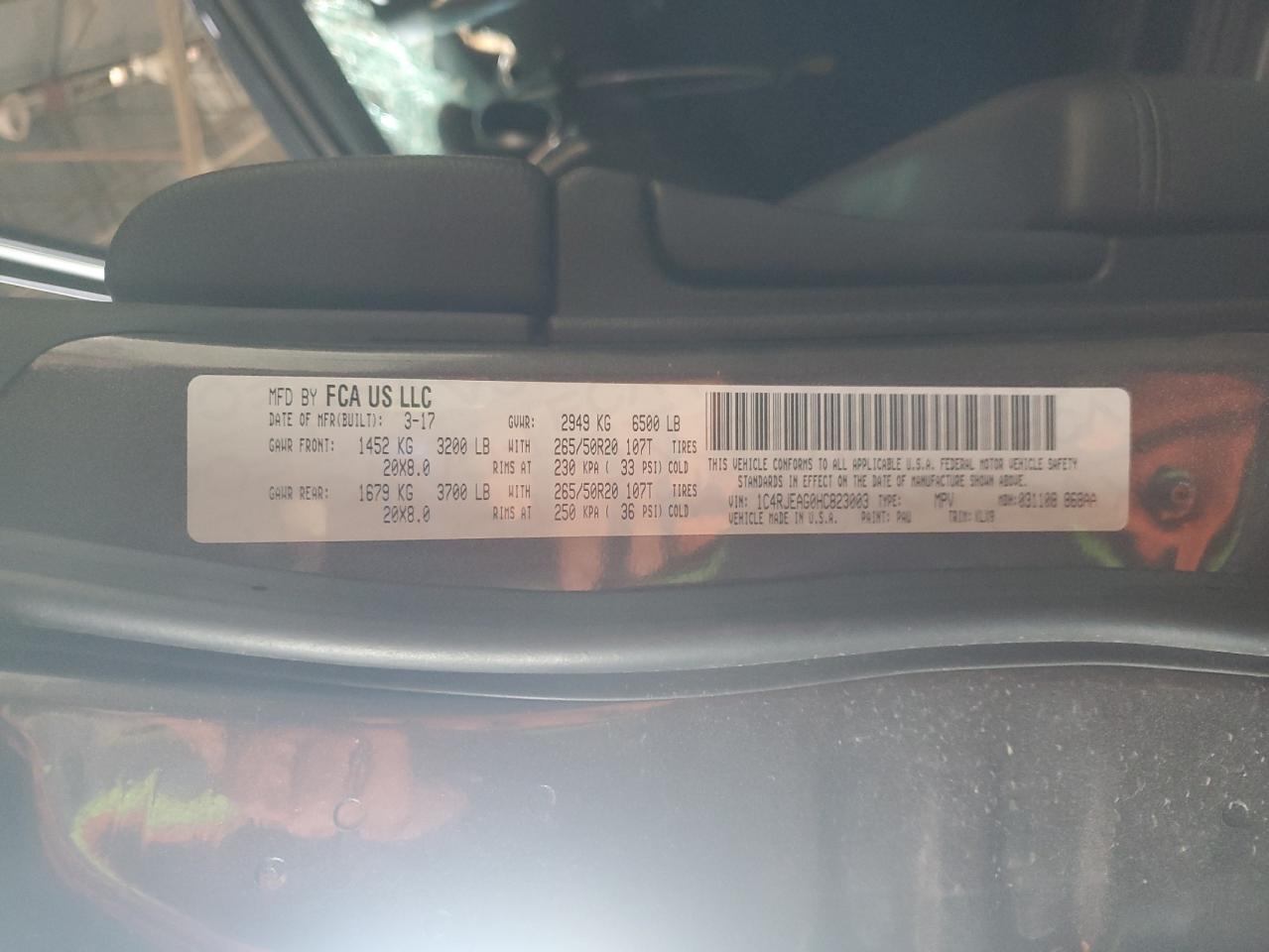 Цвет Древесный угольЦилиндры 6Привод Задний приводVIN 1C4RJEAG0HC823003Состояние Заводится и едет (проверено)Повреждения Передняя или задняя
