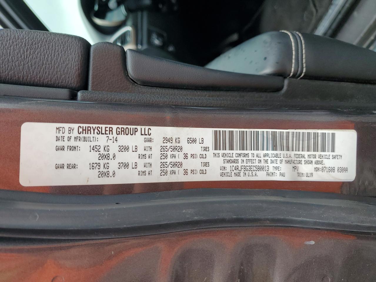 Цвет СерыйЦилиндры 6Привод 4x4 с задним приводомVIN 1C4RJFBG3EC580013Состояние Заводится и едет (проверено)Повреждения НезначительныеДата аукциона 2025-10-07