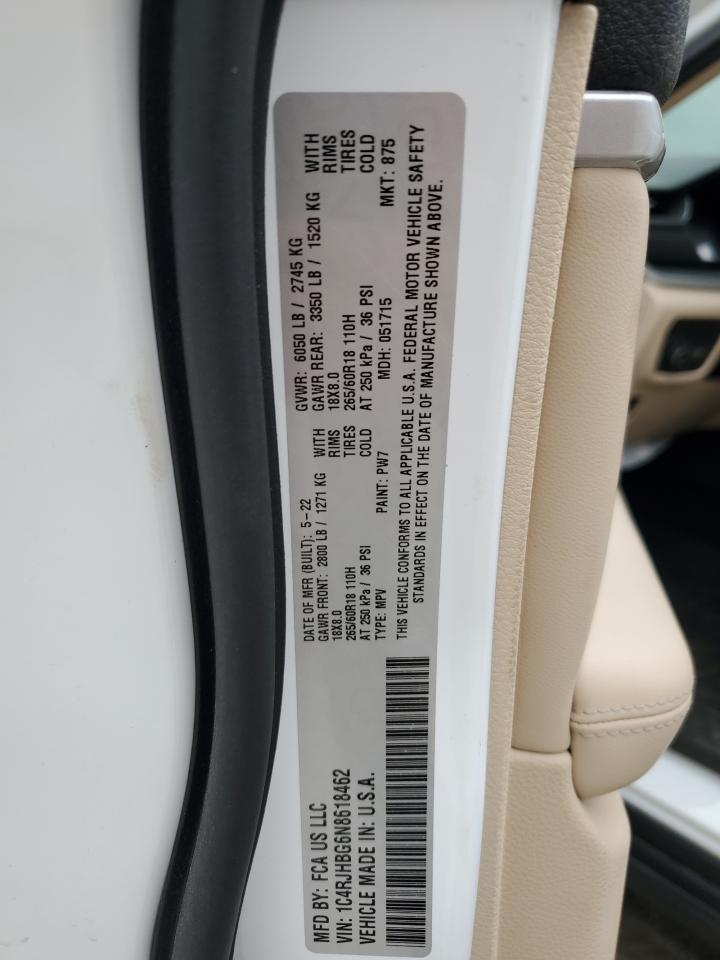 2022 JEEP GRAND CHEROKEE - 1C4RJHBG6N8618462, цвет - Белый, 3.6, Бензин, 4x4 с задним приводом из США