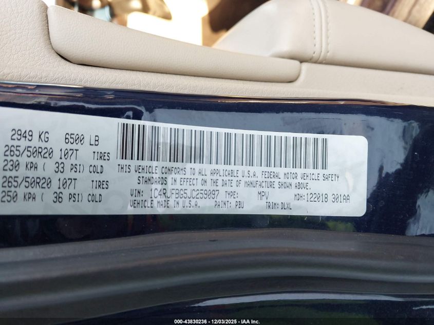 2018 JEEP GRAND CHEROKEE - 1C4RJFBG5JC259097, цвет - Синий, 3.6, Бензин, Полный привод из США
