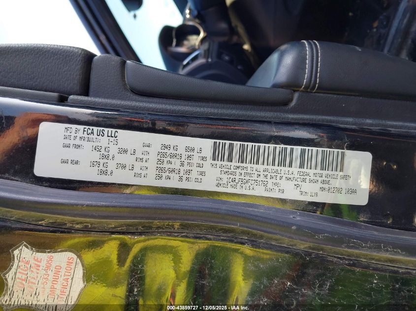 2015 JEEP GRAND CHEROKEE - 1C4RJFBGXFC751762, цвет - Черный, 3.6, Бензин, Полный привод из США
