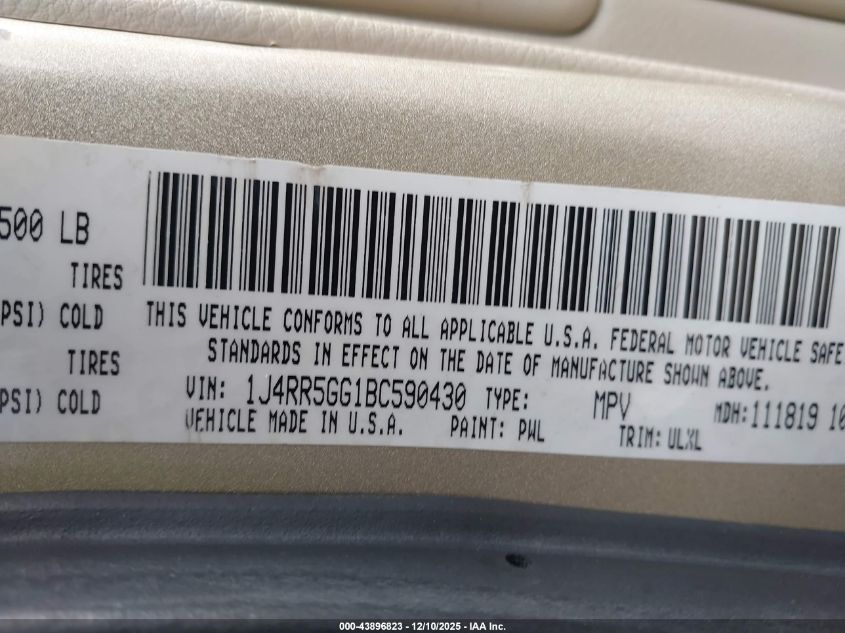 2011 JEEP GRAND CHEROKEE - 1J4RR5GG1BC590430, цвет - Золотой, 3.6, Бензин, Полный привод из США