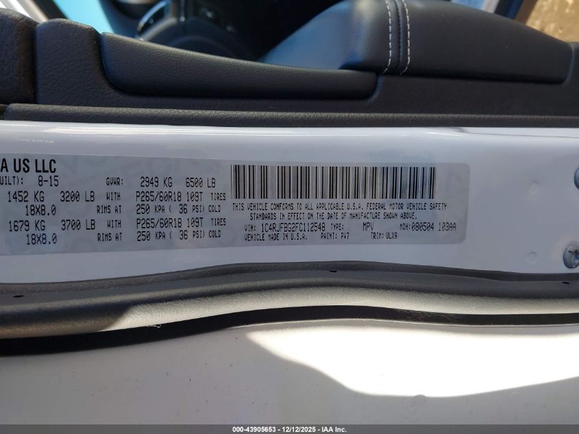 2015 JEEP GRAND CHEROKEE - 1C4RJFBG2FC112548, цвет - Белый, 3.6, Бензин, Полный привод из США